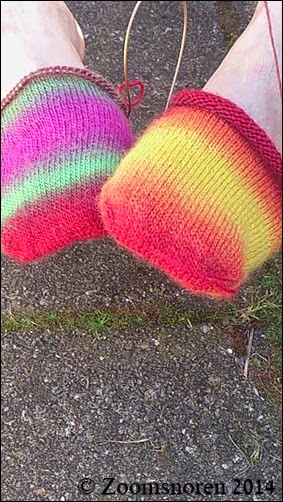 Normalt har jeg det sådan, at når man strikker med garn med farveskift, skal de helst være helt ens, men disse her kan godt afvige fra mine principper - de er så fine!